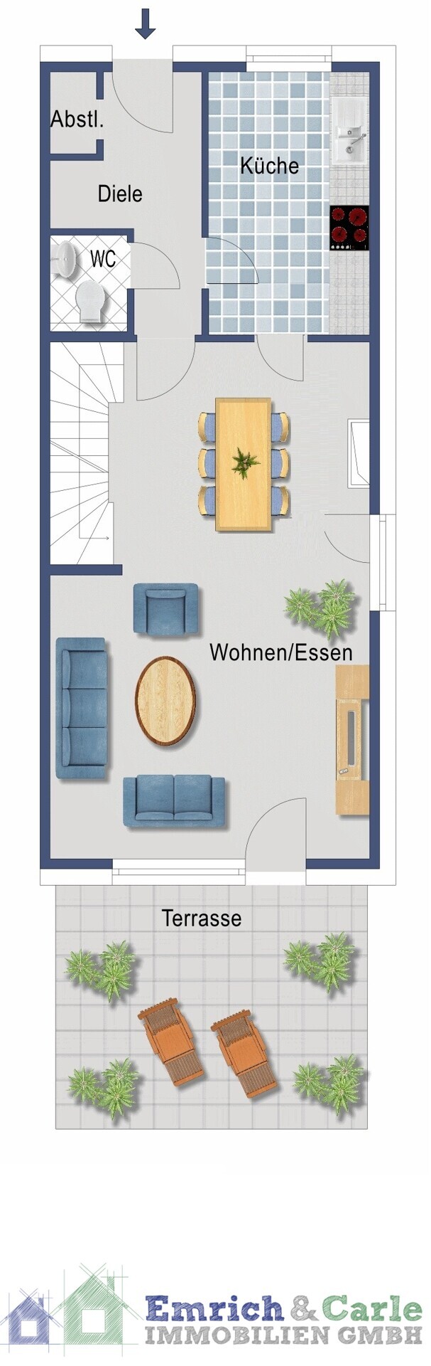 Der geschickte Grundriss mit den gut geschnittenen Zimmern eröffnet vielfältige Nutzungsmöglichkeiten – perfekt für Familie, Homeoffice und Gäste. Die gleich links nach Betreten des Hauses befindliche Küche lädt zu geselligen Kochabenden ein, während das Essen gemeinsam im daran angrenzenden Wohn-/Esszimmer im Kreise Ihrer Liebsten zu sich genommen werden kann. Dieser Raum stellt wohl auch gleichzeitig den unbestrittenen Mittelpunkt Ihres neuen Familienlebens dar. Von hier sind nicht nur die oberen Etagen über das offene Treppenhaus erreichbar, sondern auch der Garten sowie die davor gelagerte Terrasse.