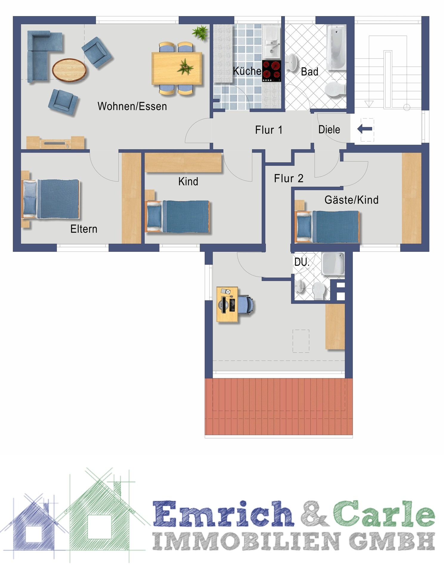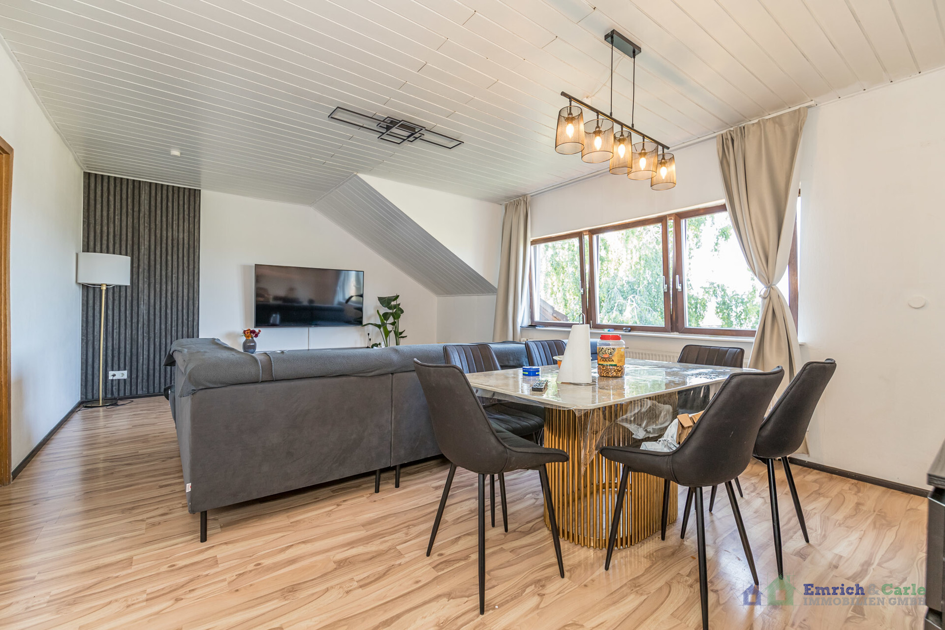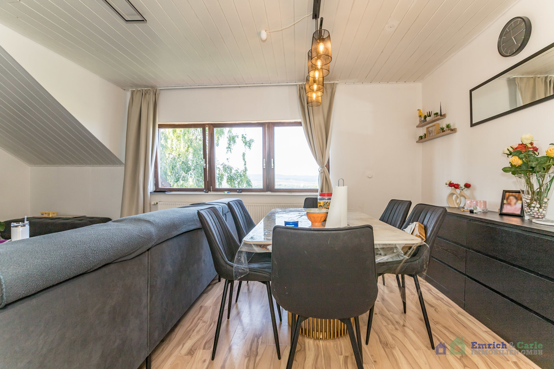 Die großzügige und gut durchdachte Raumaufteilung bietet auf ca. 110 m² viel Platz für Familien oder Paare. Den Mittelpunkt des Zusammenlebens stellt das besonders charmante Wohn- und Esszimmer dar. Gut geschnittene helle Wohn- und Schlafräume, eine abgetrennte Küche, ein Tageslichtbad mit Badewanne sowie ein weiteres separates Duschbad mit WC runden das Angebot ab.