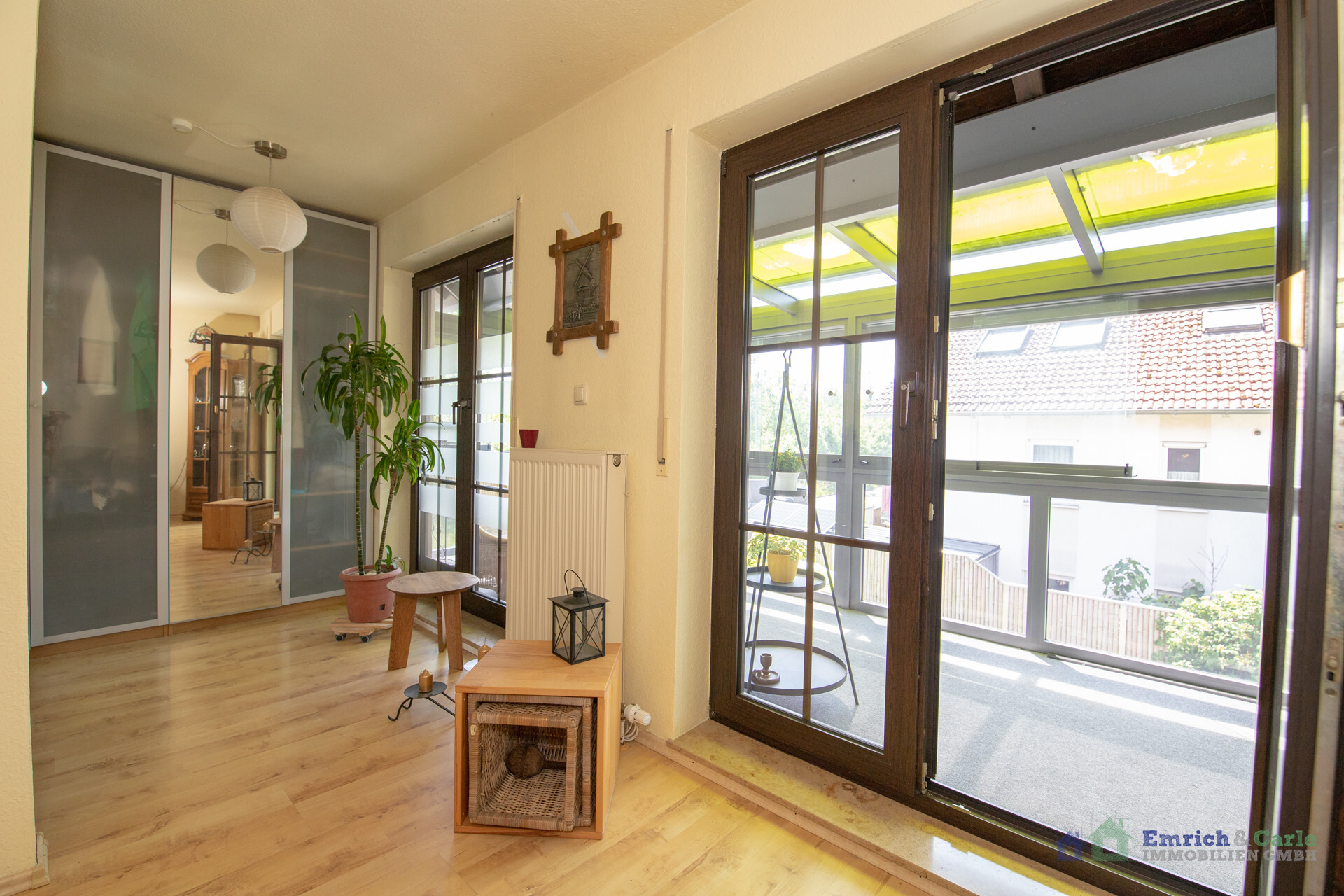 Die Wohnfläche von insgesamt ca. 75 m² verteilt sich auf zwei Geschosse sowie ein vollständig ausgebautes Dachgeschoss und bietet damit ausreichend Raum für individuelles Wohnen und Gestalten. Insgesamt stehen Ihnen vier Zimmer zur Verfügung, die sich flexibel als Schlaf-, Arbeits- oder Gästebereiche nutzen lassen. Ein besonderes Highlight ist der moderne Wintergarten, der sich über bis auf die Wohnetagen erstreckt und mit seiner Helligkeit sowie dem Blick ins Grüne für ein einzigartiges Wohnambiente sorgt.