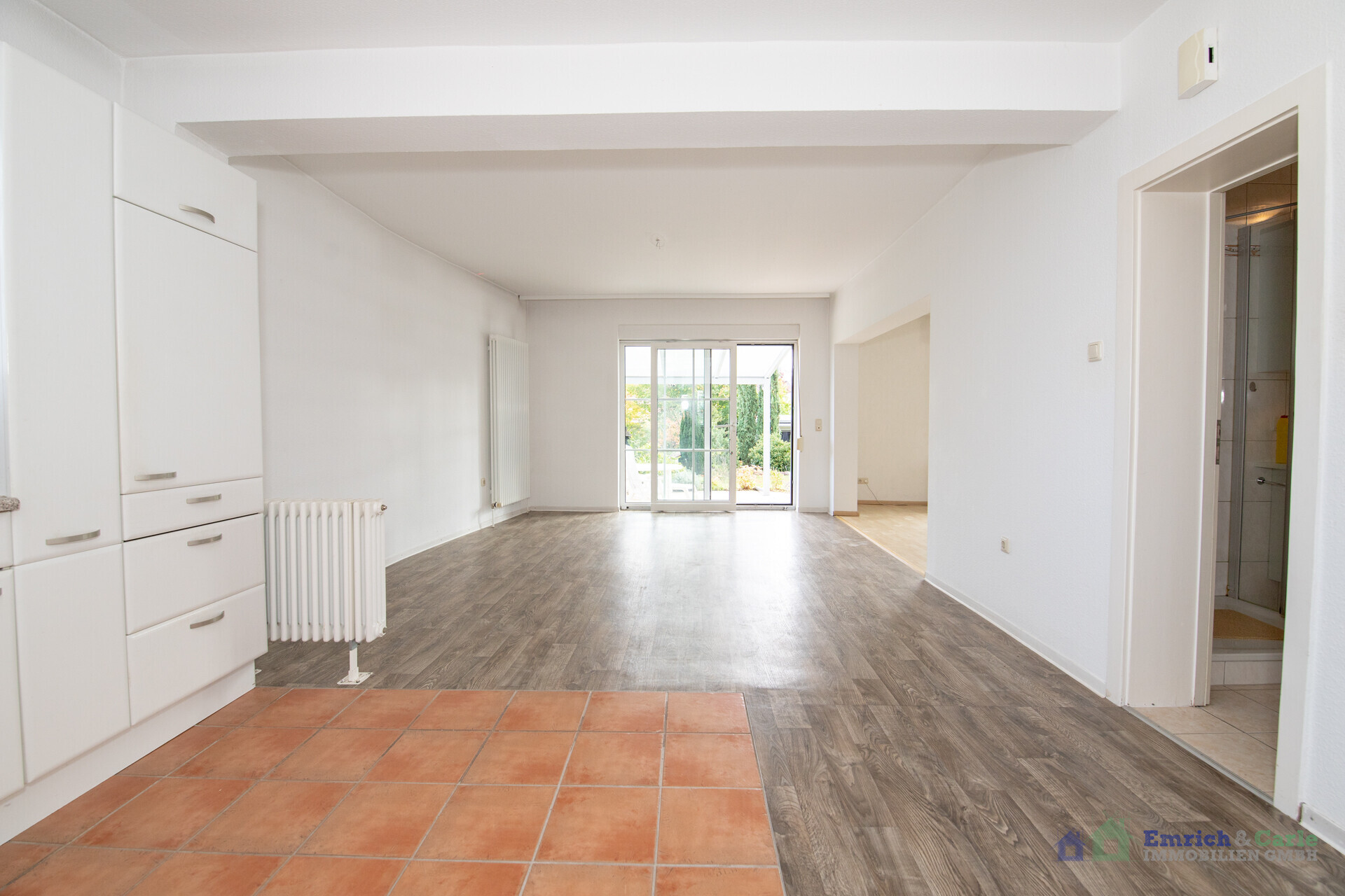 Nach Betreten des Zweifamilienhauses befinden Sie sich zunächst in einem großzügigen Flur, über den Sie sowohl das Wohn-/Esszimmer als auch eines der Schlafzimmer erreichen. Das großzügig geschnittene Wohn-/Esszimmer mit integrierter Wohnküche bildet den Mittelpunkt der Wohnung. Von hier aus gelangen Sie sowohl in ein weiteres Schlafzimmer als auch zur Terrasse und daran angrenzend in den Garten. Durch den Parkettboden sowie die ansprechenden Sprossenfenster ergibt sich ein sehr angenehmes Raumklima. Auch das mit Badewanne, Dusche und WC ausgestattete Tageslichtbad ist über das Wohn-/Esszimmer zu erreichen.