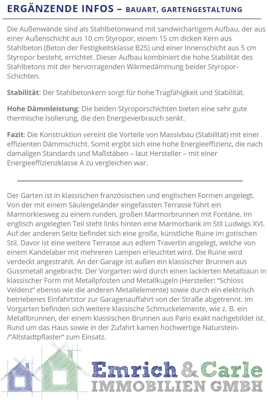 Ergänzende Infos zu Bauart u. Garten
