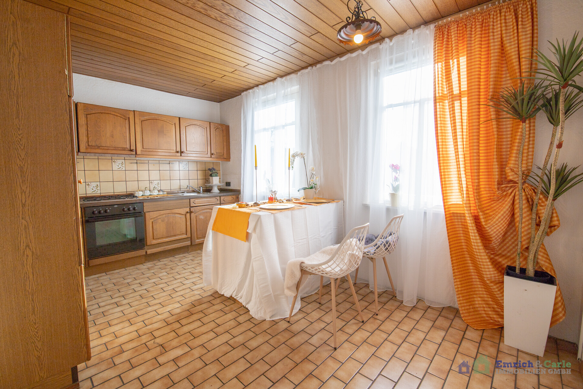 Der Grundriss der Wohnung profitiert von einer großzügigen Raumgestaltung und einer klaren Struktur. Eine gut erhaltene und bis ins Dachgeschoss hinaufführende Holztreppe führt Sie im Obergeschoss zunächst in ein angenehm großes Bad mit Badewanne und Fenster. Die ebenfalls üppig dimensionierte Küche ist mit einer älteren Einbauküche ausgestattet und durch zwei große Fenster in Richtung der historischen Gemäuer der Kaiserpfalz bilden sich großartige Lichtverhältnisse bei gleichzeitig besonderem Ausblick. Ein ähnlicher Ausblick ergibt sich aus dem Wohnzimmer, welches sich am Ende des Flures zu Ihrer Rechten befindet. Als besonderes Highlight können Sie sich auf einen ca. 18 m² großen und durch das Esszimmer erreichbaren Wintergarten freuen. Abgerundet wird die Wohnung durch ein in Richtung des Wintergartens ausgerichtetes Schlafzimmer sowie das vierte Zimmer im Dachgeschoss.